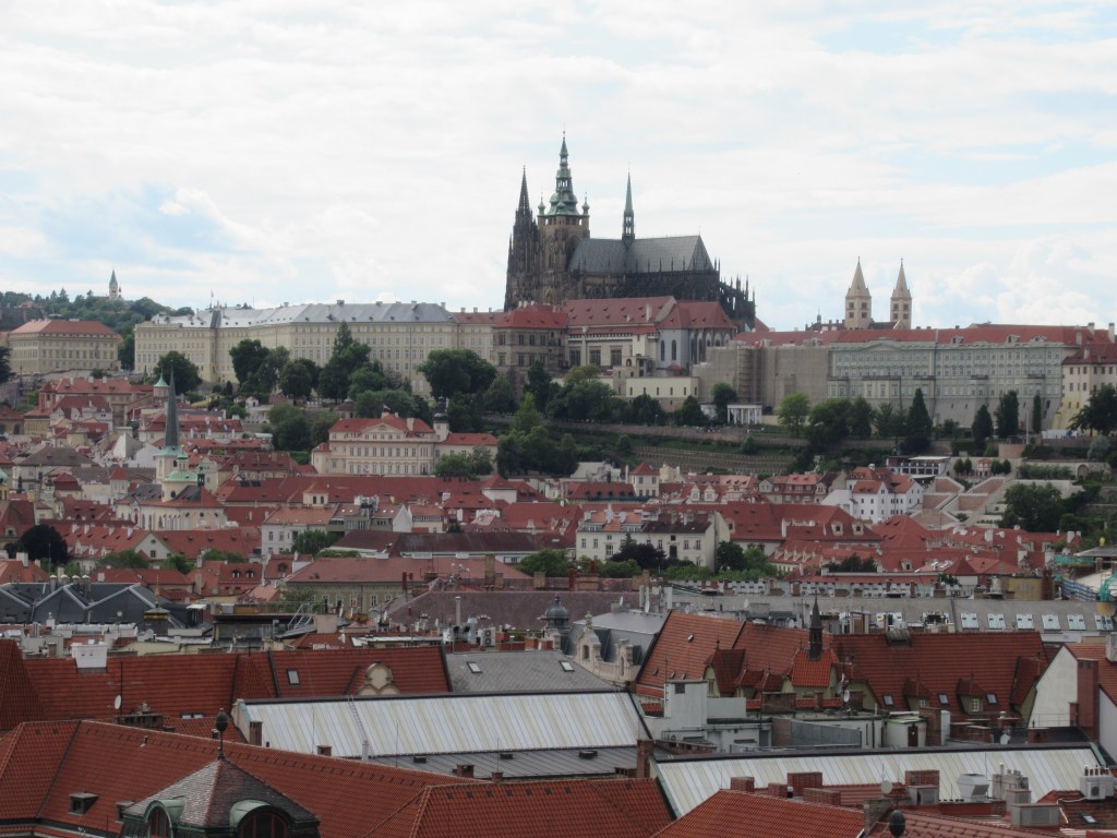 I didn’t climb these towers, but they are visible from almost any other tower in the city. On the left is Our Lady before Tyn, right on the Old Town Square. The church was built in the Gothic style from the 14th to the 16th century. The interior was remodeled in the Baroque style in the 17th century. On the right is St. Vitus Cathedral in the Prague Castle complex. It is the largest and most important religious building in Prague. It was built starting in 1344 in the Gothic style. The main tower is 337 feet tall.