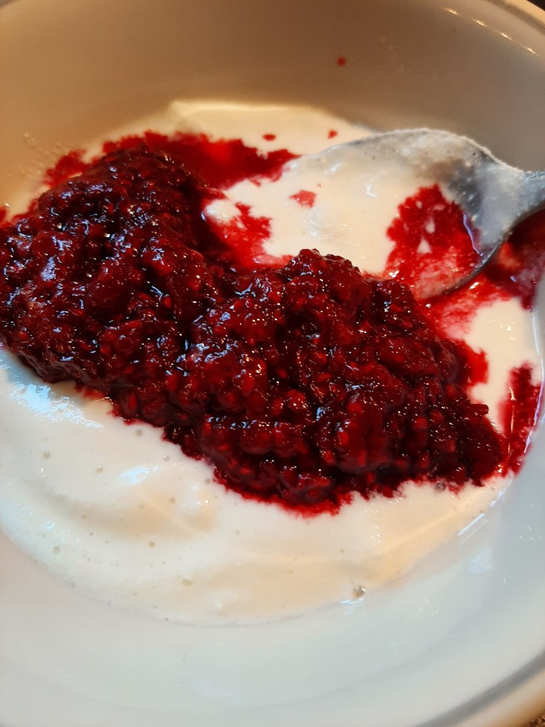 This recipe is fairly straight-forward. Just mix equal weights of raspberries and sugar. Bring it to a boil. Boil, stirring constantly, for 2 to 3 minutes. The result is a delicious raspberry mixture with the texture of a thin jam or thick fruit soup. For a modern take, try it mixed with yogurt or oatmeal.